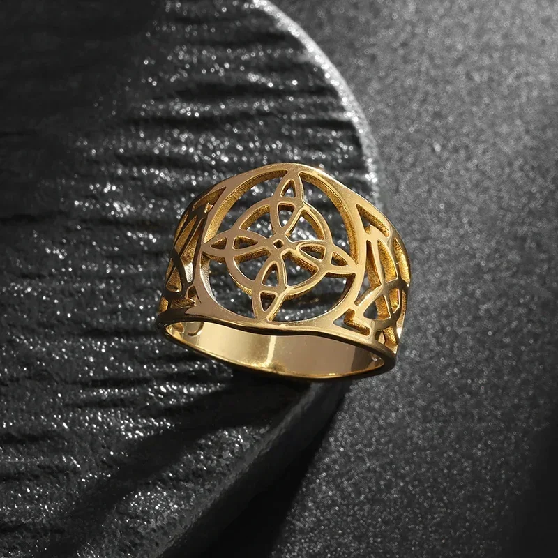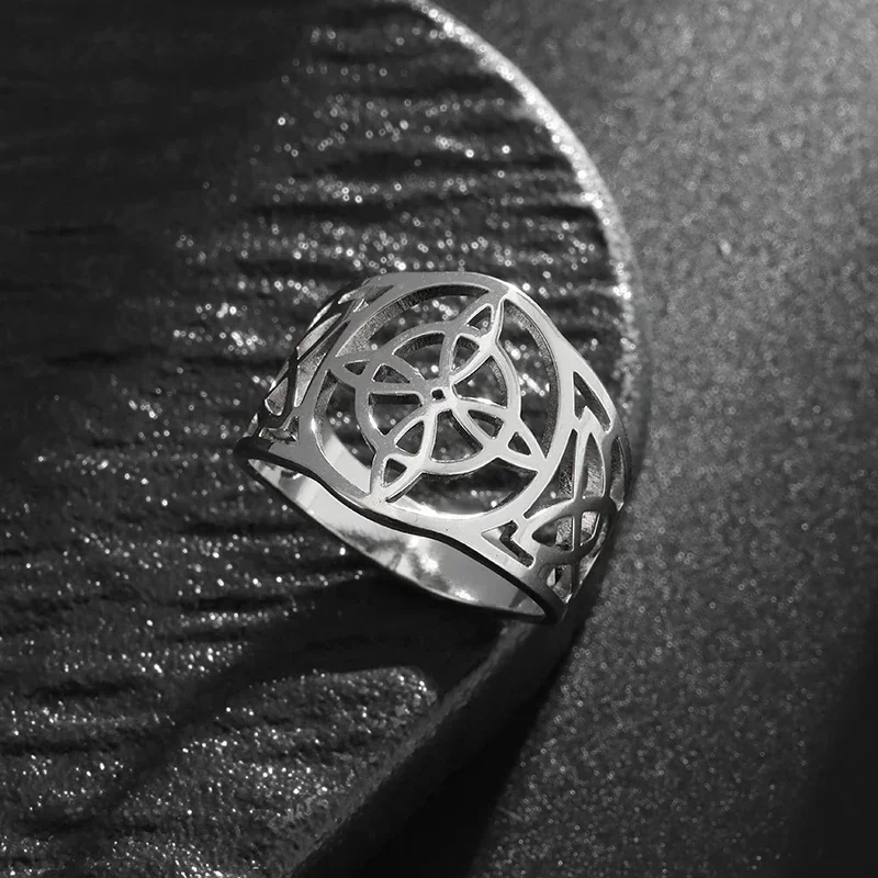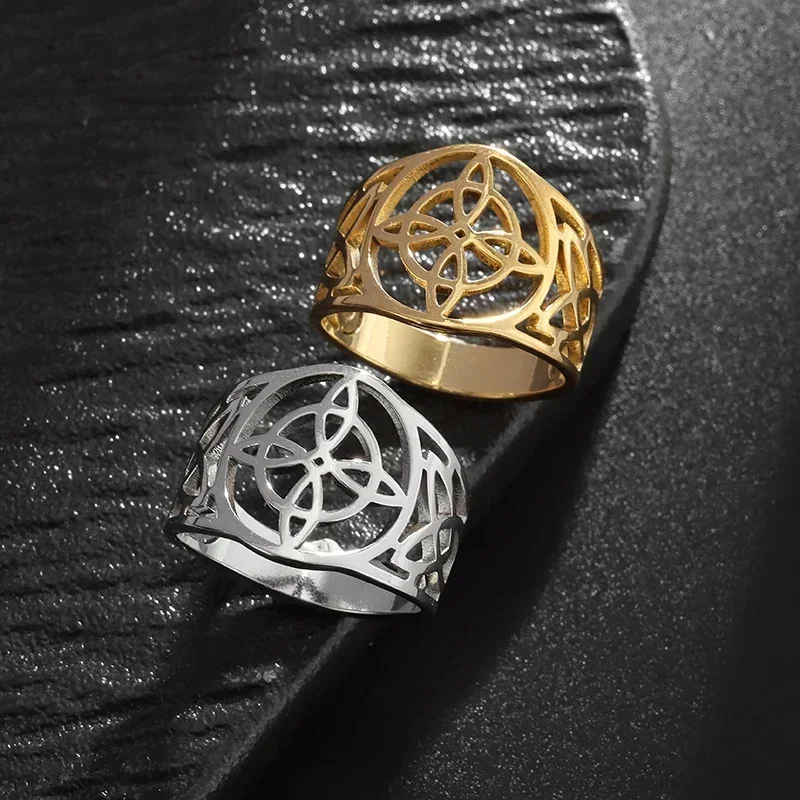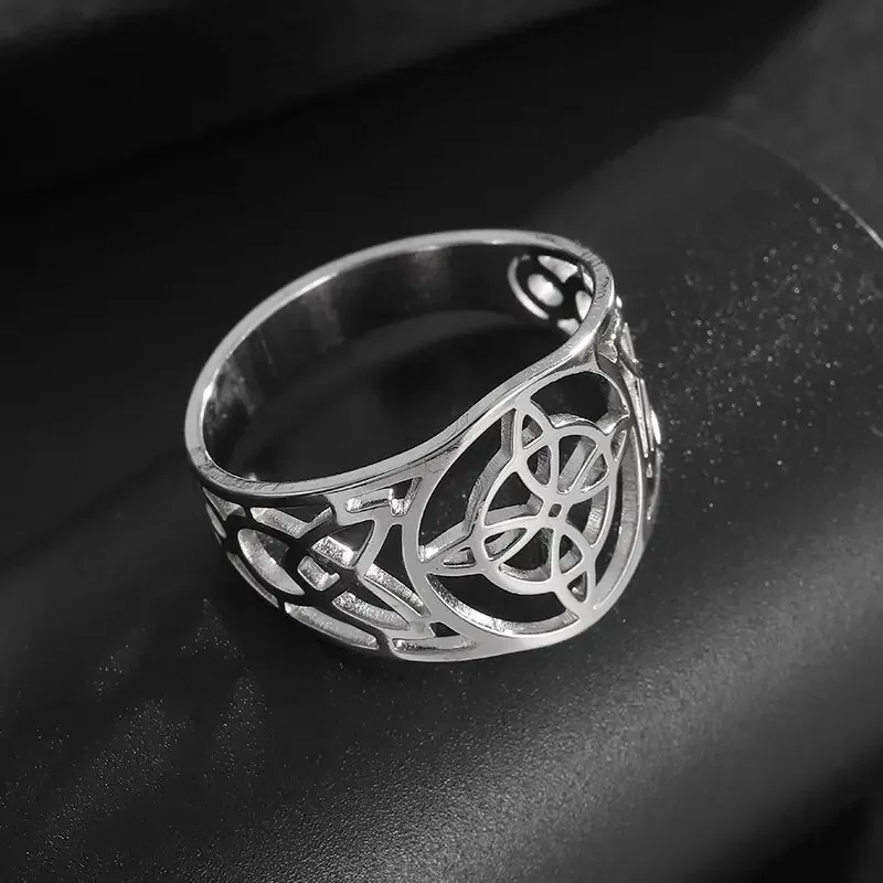 Anillo de nudo celta con nudo de bruja hueco de acero inoxidable, amuleto de fiesta informal a la moda, regalo de joyería Universal para hombres y mujeres