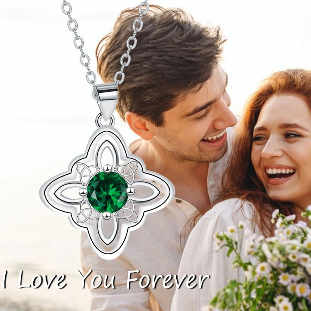 Collar clásico de nudo de bruja de plata tailandesa 925 con circonitas, nudo de Trinidad, buena suerte, abalorio CZ, joyería de protección con símbolo Wiccan