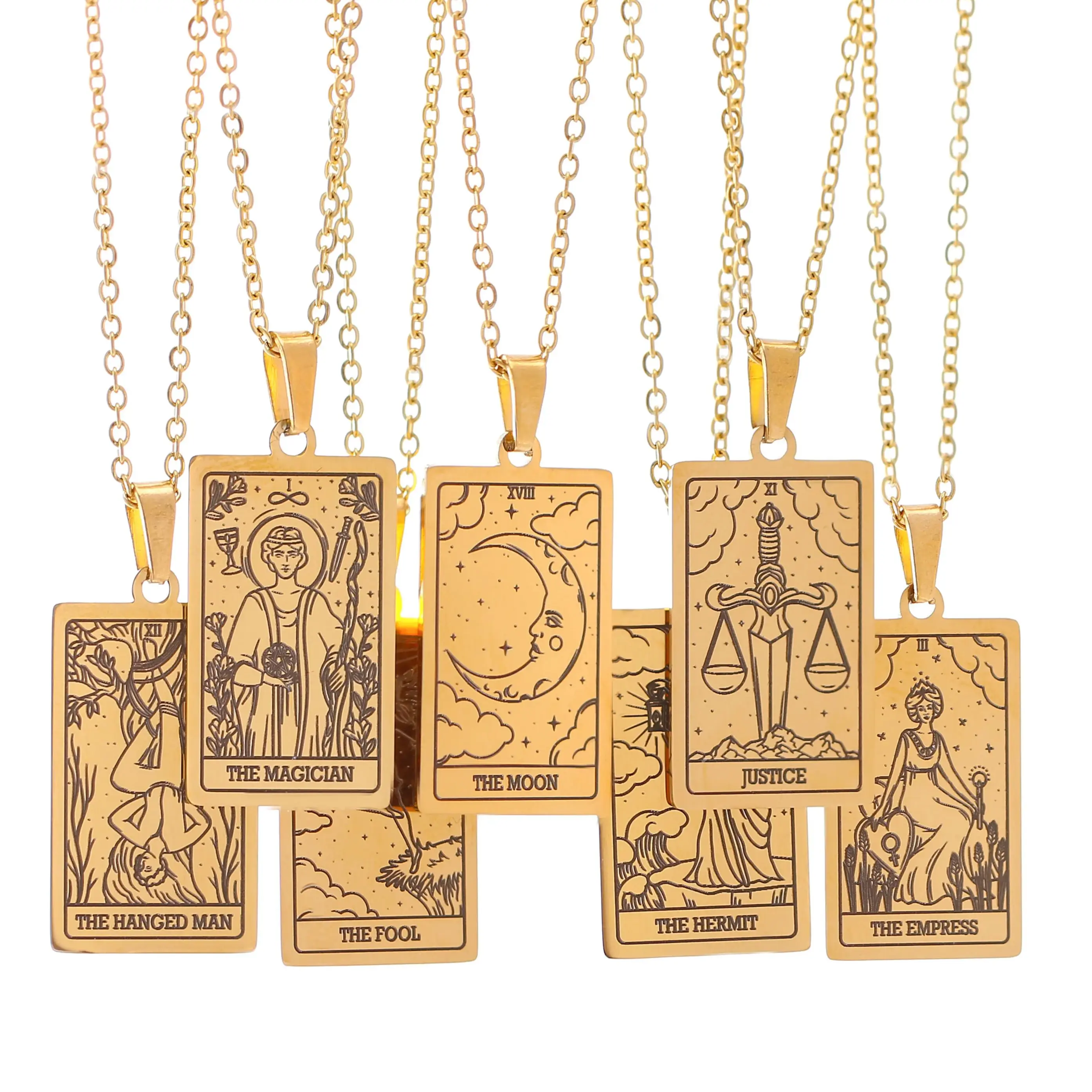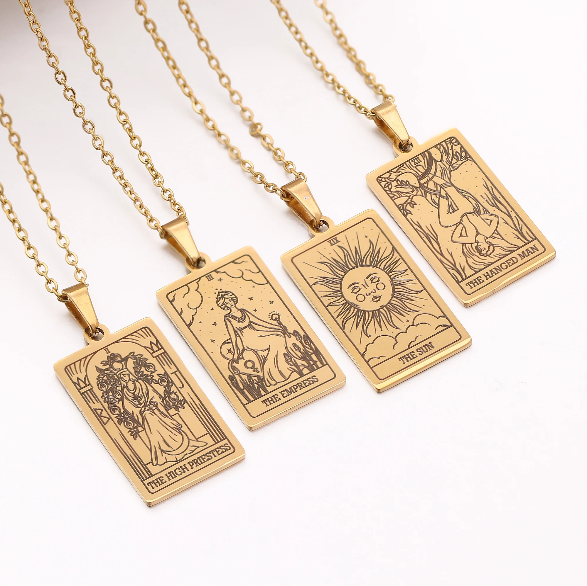 Collar de cartas de Tarot, amuleto de acero inoxidable, joyería de Tarot de la suerte, gargantilla para mujer, collares con colgantes de mago/estrella/luna/sol, venta al por mayor
