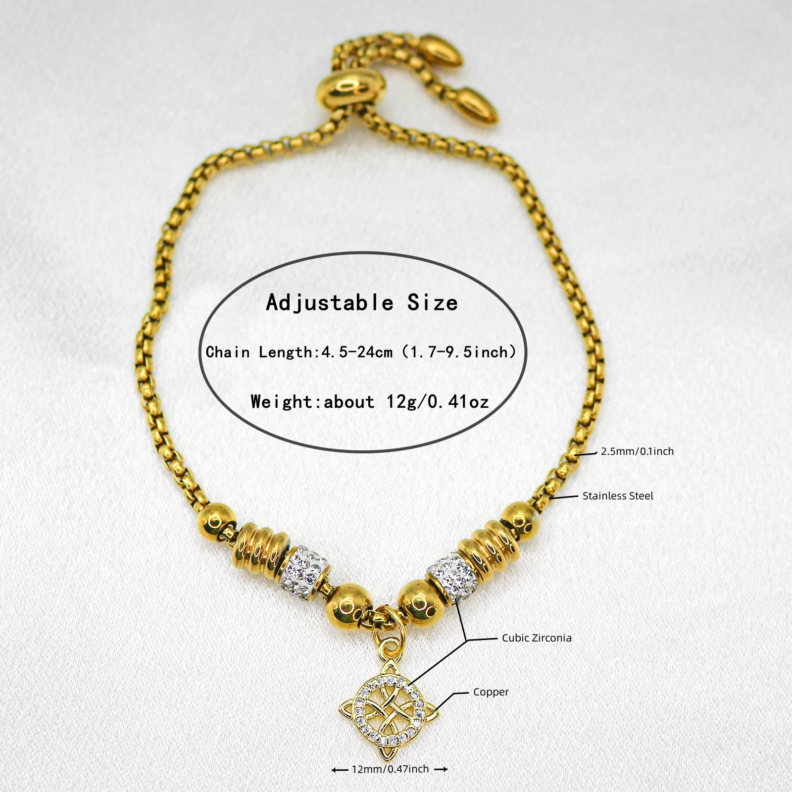 | Material | Zirconia cúbica, Copper plated with gold+Metal+Cubic zirconia+CZ |