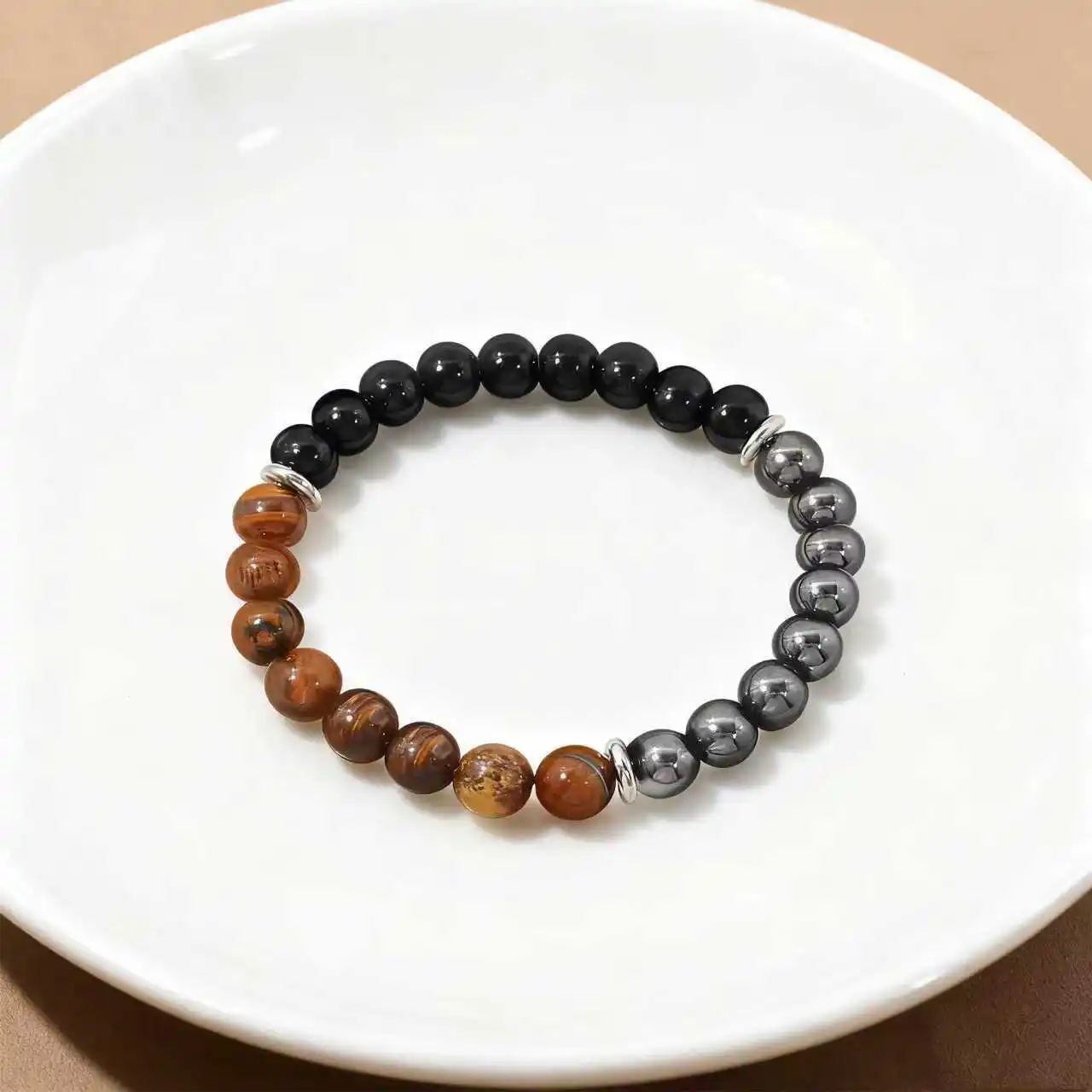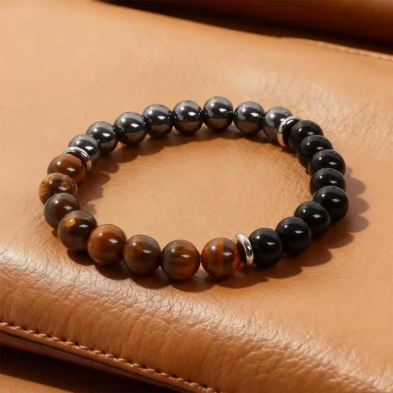 Pulsera de hematita de obsidiana de ojo de tigre, cuentas redondas de 8mm para protección espiritual y pulseras de lujo con conexión a tierra